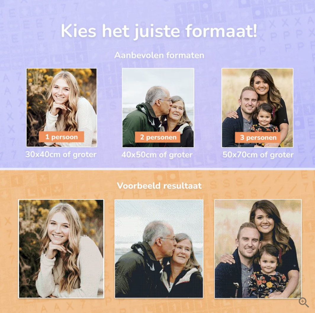 We always recommend our customers send us a photo before purchasing a personalized image. This way, we can create an example image in the desired size. We can also share the recommended size to ensure that the image is presented optimally.